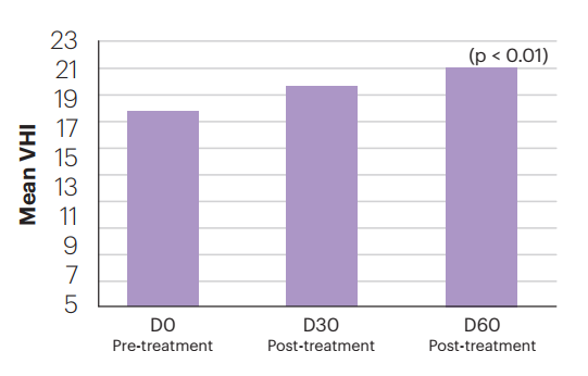 The results show a significant improvement in the functional parameters of the vagina (elasticity, flow volume, epithelial integrity, pH, hydration)