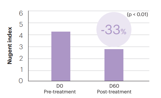 A reduction of this index shows a re-establishment of normal values of non-pathological bacteria. Measured by cytology.