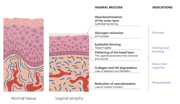 Oestrogen reduction is responsible for specific histological changes in womens genitourinary area (trigone, urethra, vagina, vulva, vestibule and labia) which affect the optimum functionality and elasticity of tissues.