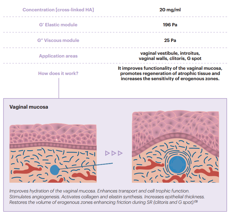 | How does it work? | It fills and restores tissue volume in the labia majora to preserve their protective function and improve their appearance. |